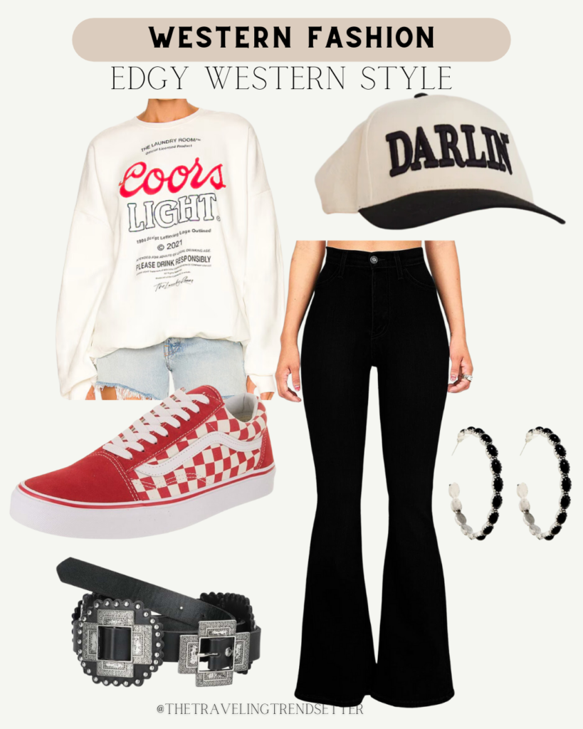 Edgy Western style is all about taking classic cowboy elements and giving them a modern, streetwear-inspired, or rock-and-roll twist. Think: